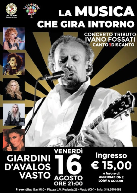 Appuntamento venerdì 16 agosto presso i Giardini d’Avalos, per il concerto tributo a Ivano Fossati. I Canto & Discanto proporranno tanti successi del celebre cantautore genovese ed anche i tanti brani scritti per artiste come Fiorella Mannoia, Mia Martini, Loredana Bertè, Anna Oxa, Patty Pravo ed altre.